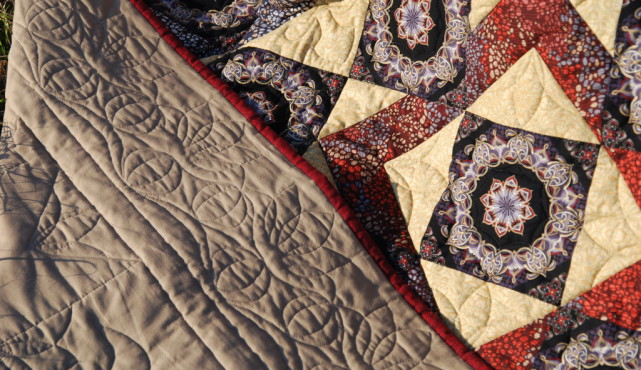 Aagain, Brigitte Heitland of QD Service did a wonderful job of matching a lovely Belly Bop pantograph with the fabric. It also gave a nice contrast to the squares.