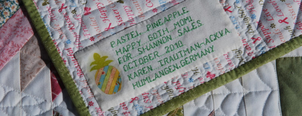 I was the most happiest with the appliquéd pineapples in the corners and the QUILTING. I found a good starting quilting design which changed the total feel of the quilt.