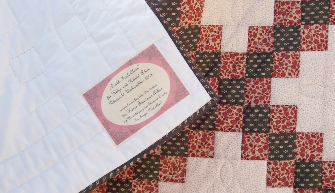 I know that Helga enjoys this quilt, because it still adorns their guest bed in their home. It is always very well ironed. I appreciate it and snuggle under it every time I visit them.