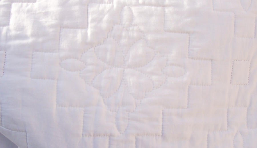 This quit is very symblolic, because every medallion is a symbol of the length of a marriage in years. Each one was carefully cut out and meticulously outlined with a quilting pattern and quilted. Yet each one is slightly different. The beauty can only truly be enjoyed after many years of a successful marriage.
