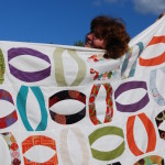 A couple of weeks ago, I helped out my friend, Brigitte, get one of her designs ready for the International Quilt Market in Kansas, USA. With her beautiful new fabric line "Juggling Summer" from Moda, I pieced the top of forty rings. It is actually much easier than it may appear. It was all rotary cut from just one layer cake.