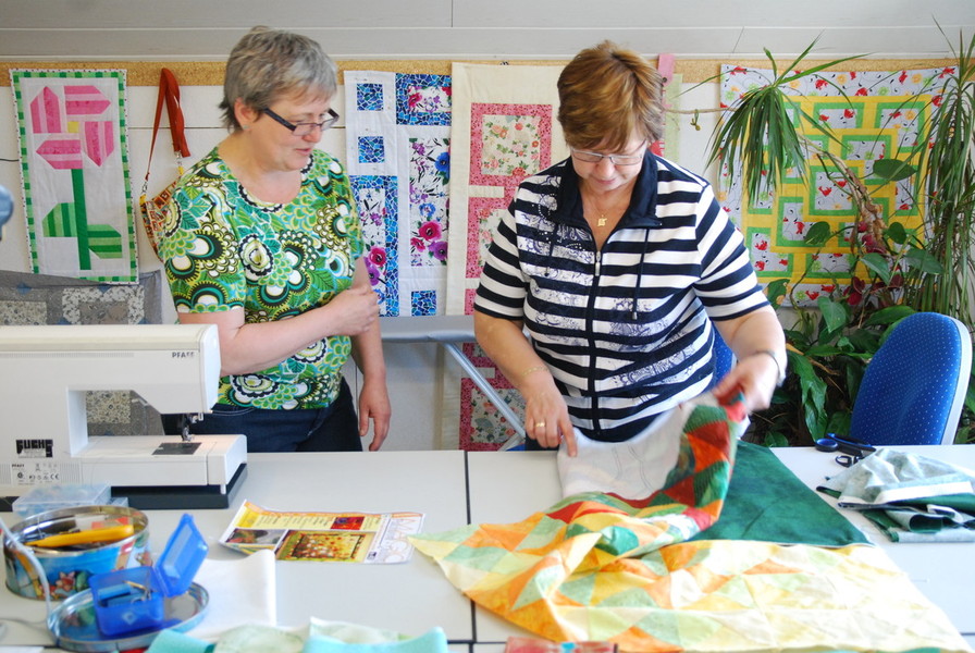 I have grown together with the ladies of my Wednesday night patchwork class over the years and watched them progress in their skills, techniques and design qualities. We challenge one another and ask for advice as well. This is my extended family. I would like to share their projects with you to show you what great patchworkers we have right here in GERMANY.