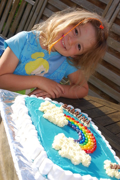 My little girl is not so little anymore. She celebrated her 5th birthday. She is such a cutie pie, my little sunshine. As with every birthday, I like to spoil the kids with a homemade cake for school, Kindergarten or home. My daughter named at least five different cakes that she wanted me to make. I decided on a rainbow sheet cake for Kindergarten and a store bought cake for her birthday party. Yes, I bought a birthday cake. My sister was proud of me. Since there were only four/five guests to her birthday party, I thought it fit not to worry too much about a lot of baking and there were no siblings at the party either. This really makes things easier.