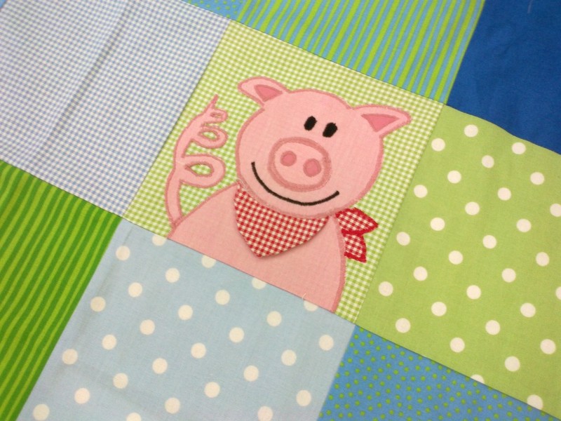 I didn't want to forget to show you this: Bettina from our sewing group is extremely busy this year sewing her heart out. She was working on this baby blanket (Krabbeldecke) for a couple of weeks with the cutest application of animals. She did a fantastic job!! She is a very talented and accurate sewer. She has such a great eye for mixing colors too!
