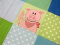 The first picture above is Evi's beautiful pillowcase which matches the "Krabbeldecke" she sewed for a friend. She put a lot of work into both, and the are so cute and cuddly. Her sense for fabric is great!